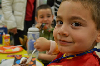 While I was at the shower and Mike was bowling, the boys got to hang with Auntie Faithy and Uncle Evan. Shrek ears and intense training in use of the term "Bazinga" was on the schedule for the day. They had a blast!