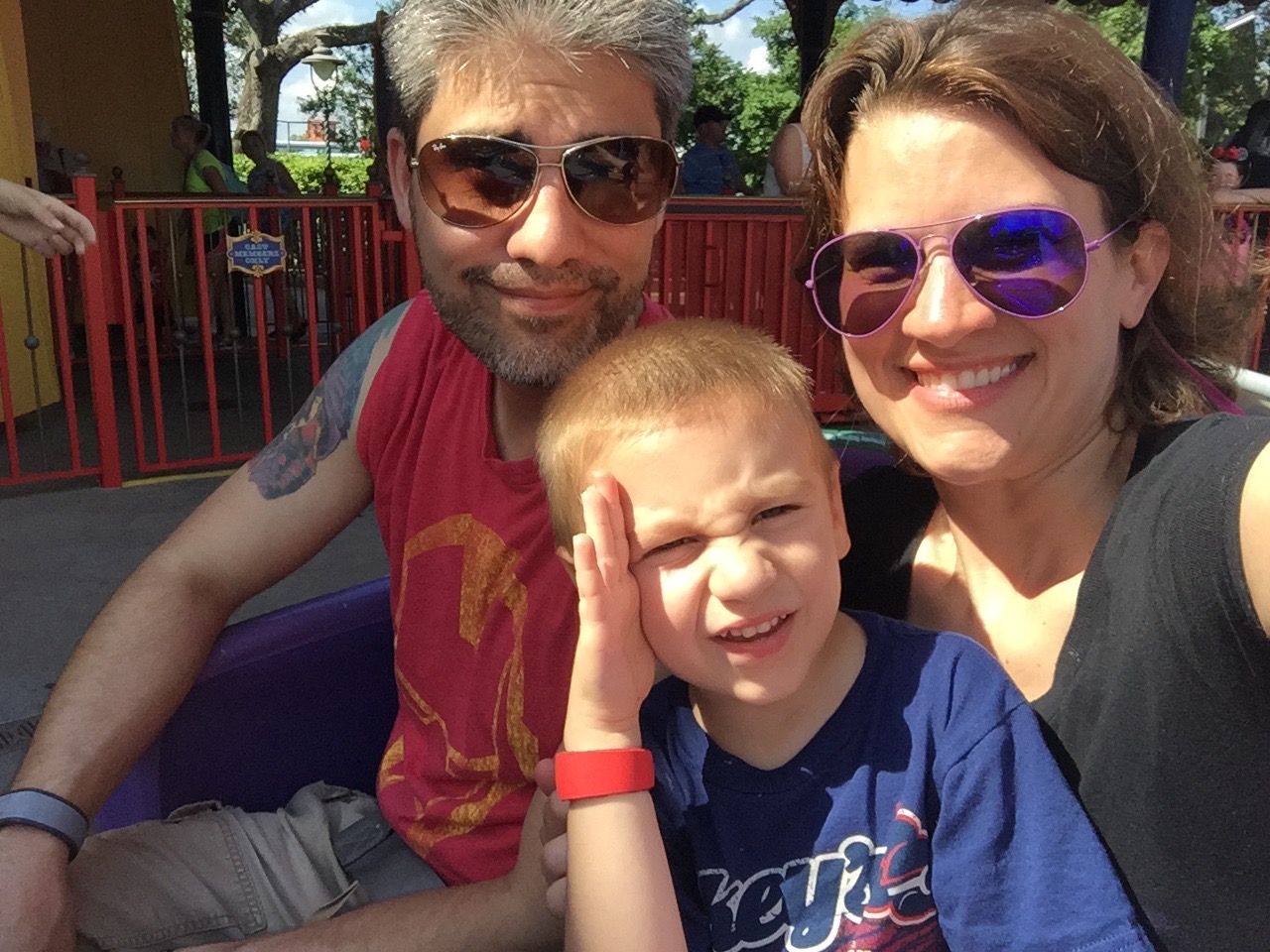 We headed back to the hotel in the afternoon for a couple hours rest and coolness. Then Mike and I went back to Magic Kingdom with our big two for some shopping, another ride on Buzz for Sam and some ice cream!